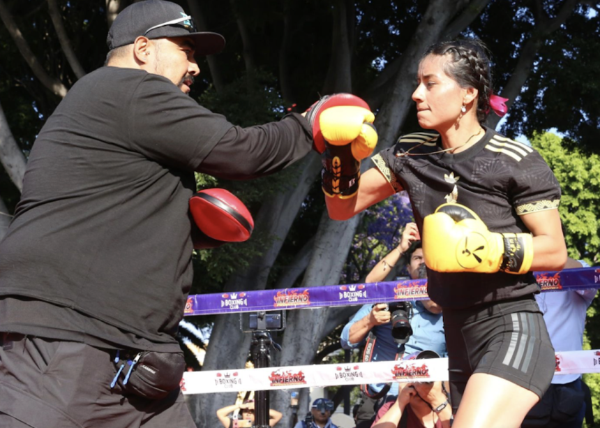 Rumbo a la pelea del próximo viernes , La Bonita Sánchez realizó un entrenamiento ante mujeres, niñas y niños , que se reunieron alrededor del ring para presenciar a la boxeadora poblana, quien mostró sus habilidades en el cuadrilátero a través de diversas rutinas.