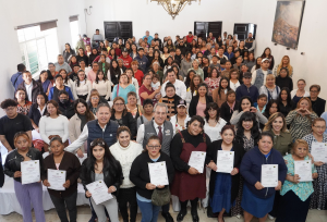 Puebla, Pue., 24 de noviembre de 2025.- El Gobierno de la Ciudad, a través de la Secretaría para la Igualdad Sustantiva de Género, realizó la entrega de constancias Mujeres Imparables 2025 a 200 poblanas en la Junta Auxiliar Ignacio Zaragoza que concluyeron talleres orientados al emprendimiento, el empleo y el autoempleo.